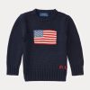 Egy ikon és egy ikon, a mi pólómackónk a ralph lauren amerikai zászlós pulóvert viseli ebben a vaskos, kötött pamutrétegben.