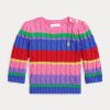 Ebben a pamut pulóverben a póló medve Ralph Lauren ikonikus zászlós pulóverébe öltözött, csinos, csipkézett élekkel kötött.