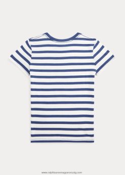 póló mackó csíkos pamut póló 26804810001 gyerekek Ralph Lauren fedélzetmosó fehér/éjszakai sötétkék
