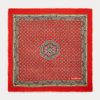 A tiszta pamutból készült négyzet alakú sál szegéllyel keretezi szeretett pólómaciunkat, aki stílusosan öltözött egy napra a tenger mellett farmer foltvarró felsővel, espadrillákkal és makramé táskával.