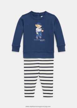 póló medve pulóver és leggings szett 2680488205 baba Ralph Lauren éjszakai sötétkék/fehér multi
