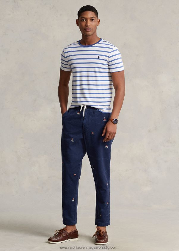 A polo prepster archív sziluettje, amelyet kényelmes húzózsinóros derékpánttal frissítettek. ez a változat puha pamut chino-val készült, és tengeri ihletésű motívumokkal hímezve. A ralph lauren jobb gyapottal együttműködve javítja a gyapottermesztést világszerte. a jobb gyapot arra tanítja a gazdálkodókat, hogy hatékonyan használják fel a vizet, gondoskodjanak a talaj és a természetes élőhelyek egészségéről, csökkentsék a legkárosabb vegyszerek használatát, és hajtsák végre a tisztességes munka elveit.