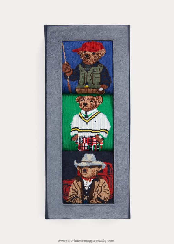 A világ legjobban öltözött medvéje három ikonikus megjelenést ölt a pamutkeverékből készült zoknikon ebben a dobozos ajándékkészletben, köztük egy western témájú ruhát, amelyet Mr. archív fényképe ihletett. lauren.