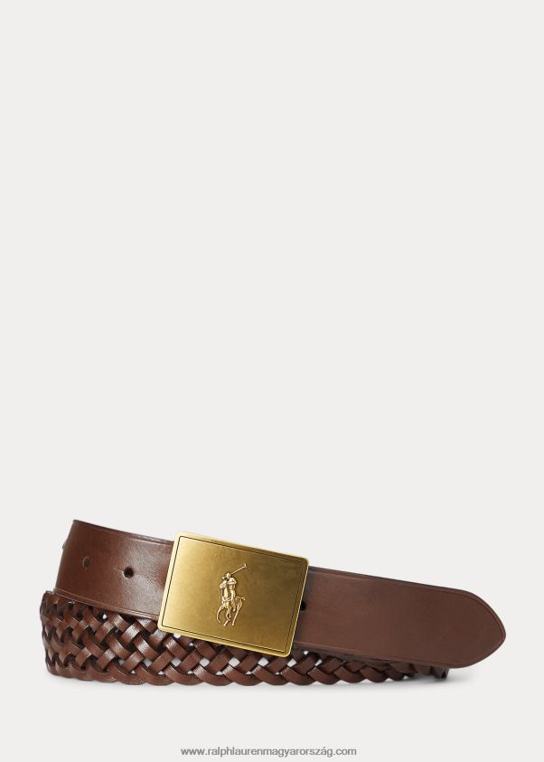 A teljes bőrből készült öv pántja fonott szerkezettel rendelkezik. Ralph Lauren jellegzetes pónija kiemeli a sárgaréz plakettcsatot.