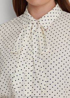 pöttyös nyakkendős krepp ing 2680484668 nők Ralph Lauren pergamen krém/tengerészet