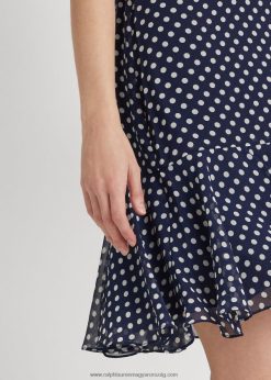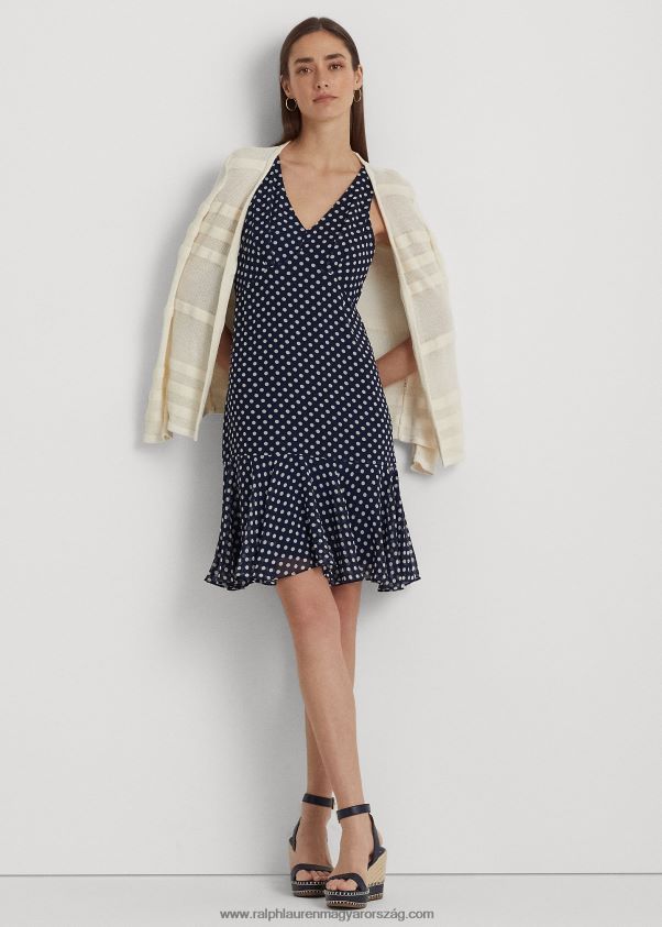 pöttyös sifon ujjatlan ruha 2680489419 nők Ralph Lauren sötétkék/krém