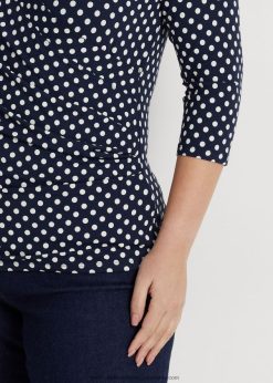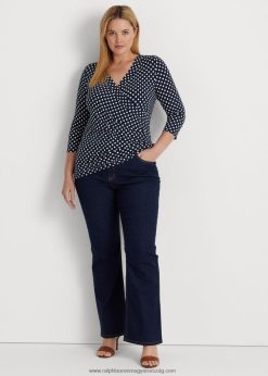 pöttyös surplice jersey felső 2680484594 nők Ralph Lauren sötétkék/krém