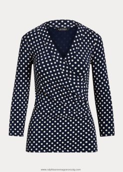 pöttyös surplice jersey felső 2680484594 nők Ralph Lauren sötétkék/krém