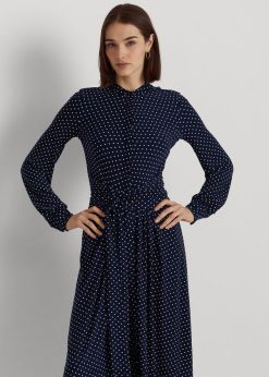 pöttyös sztreccs trikó ingruha 2680484446 nők Ralph Lauren sötétkék/krém