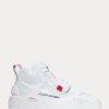 A 90-es évek klasszikus kosárlabdacipői által ihletett ps100 magas szárú sziluettje jelentős eva középtalppal és tpu erősítéssel a saroknál készült. Ez a változat bőrrel, hálóval és műbőrrel van bevonva, és ikonikus pólósport grafikával díszített.