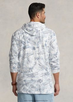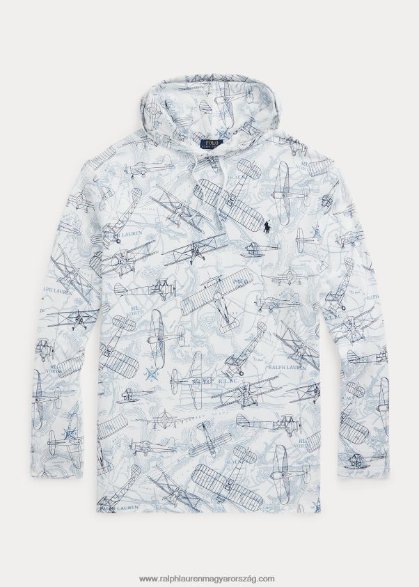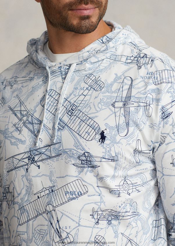 repülőmintás jersey kapucnis póló 2680481919 férfiak Ralph Lauren világcirkáló fehér