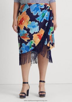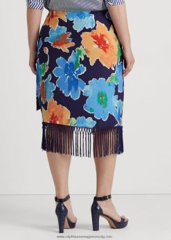 rojtos szegélyű virágos kreppszoknya 2680484813 nők Ralph Lauren haditengerészet multi