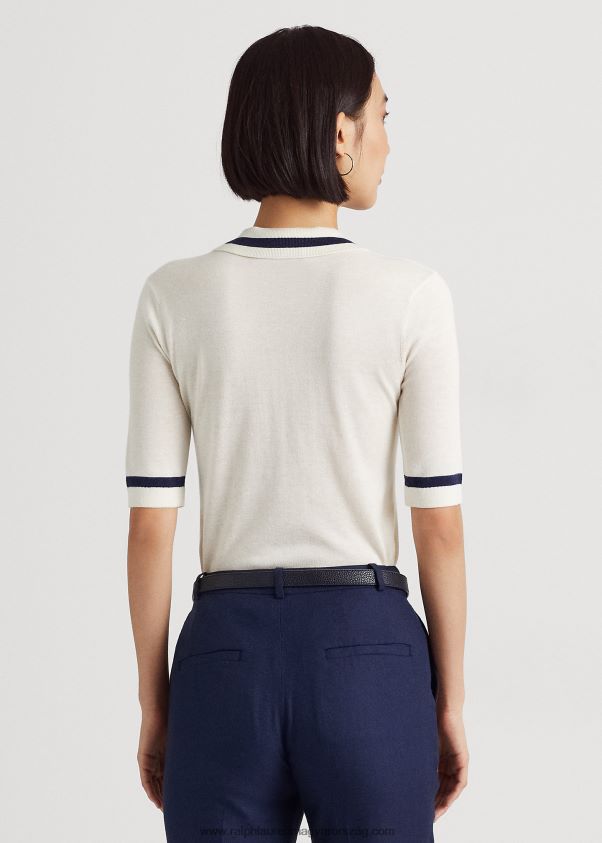 selyemkeverék rövid ujjú pulóver 2680483997 nők Ralph Lauren mascarpone krém