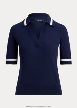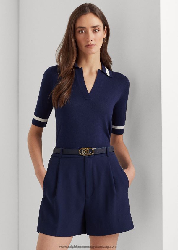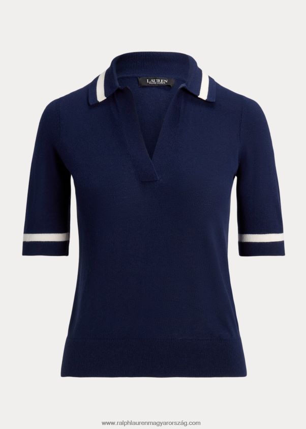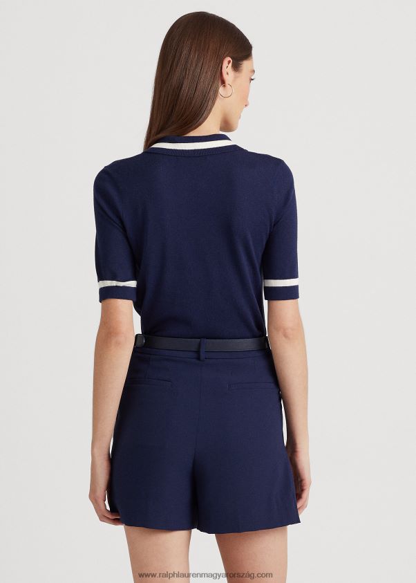 selyemkeverék rövid ujjú pulóver 2680484395 nők Ralph Lauren kifinomult haditengerészet