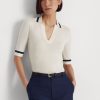Ralph Lauren ikonikus pólóingje által ihletett rövid ujjú pulóver kéttónusú dizájnnal és bordás pólógallérral rendelkezik. kifinomult ruhatár-alapanyag, fényűző selyemkeverékből készül a puha kézért.
