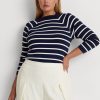 selyemkeverék rövid ujjú pulóver 2680484662 nők Ralph Lauren mascarpone krém