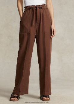 selyemkeverék széles szárú nadrág 2680483171 nők Ralph Lauren csokoládébarna