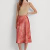 mintás szatén hajtogatott a-vonalú midiszoknya 2680483196 nők Ralph Lauren nyírfalevél nyomat