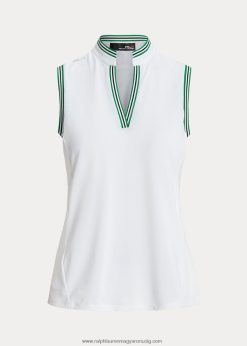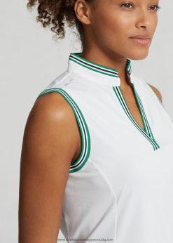 szabott szabású piké ujjatlan ing 2680483720 nők Ralph Lauren kerámia fehér/zöld multi