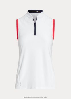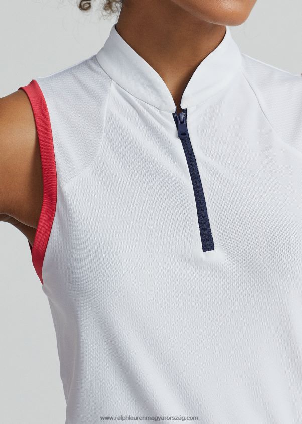 szabott szabású ujjatlan piké ing 2680483710 nők Ralph Lauren tiszta fehér / maui vörös / sötétkék