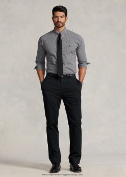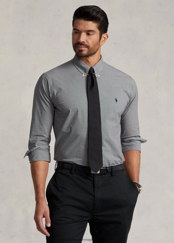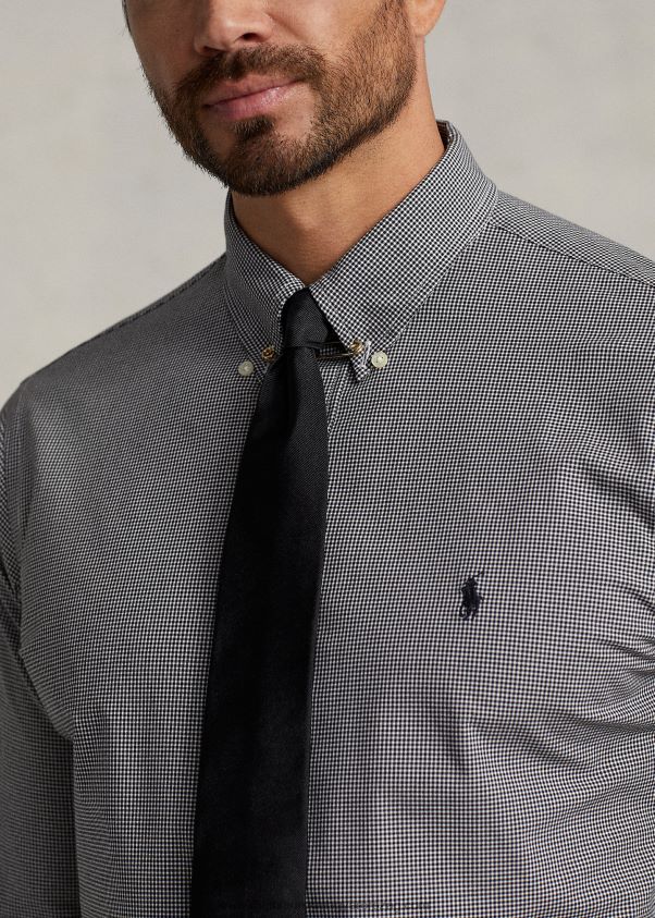 sztreccs poplin ing 2680481505 férfiak Ralph Lauren fekete/fehér csekk