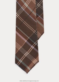 tartánmintás selyem krepp nyakkendő 2680488923 férfiak Ralph Lauren világosbarna multi