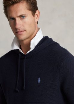 texturált pamut kapucnis pulóver 268048922 férfiak Ralph Lauren sötétkék hanga