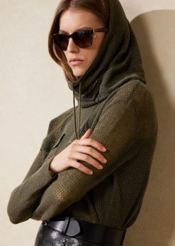tölcsérnyakú selyem-vászon hálós pulóver 2680489291 nők Ralph Lauren ikon olajbogyó