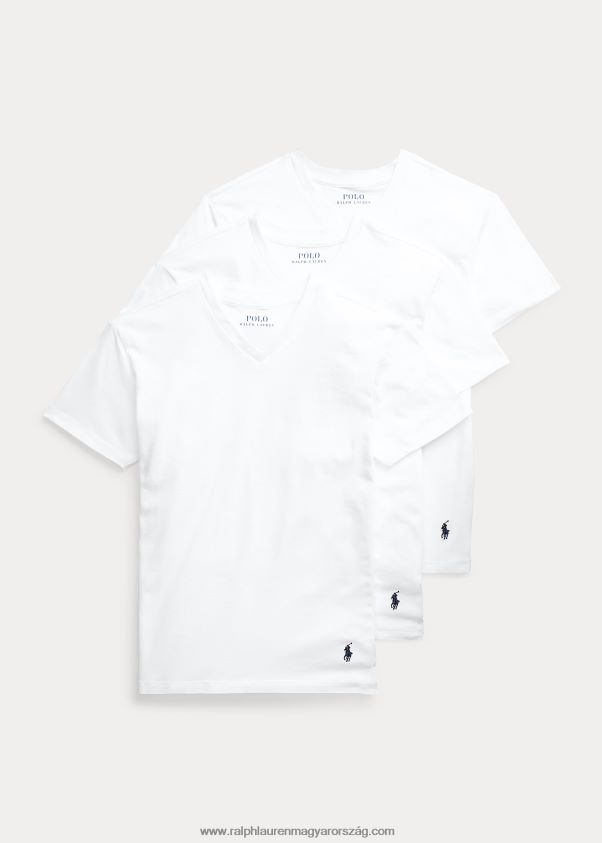tömör pamut V-nyakú 3 db 2680486412 gyerekek Ralph Lauren fehér/tengerjáró
