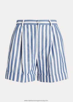 csíkos redőzött vászon-pamut dobby rövid 2680483058 nők Ralph Lauren kék/fehér napellenző csík