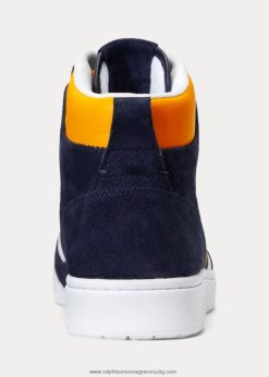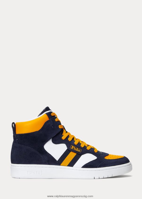 udvari bőr-velúr magasszárú tornacipő 2680481987 férfiak Ralph Lauren sötétkék/fehér/sárga
