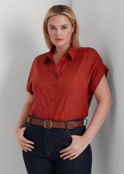 vászon dolmányujjú ing 2680484500 nők Ralph Lauren vörös napkő