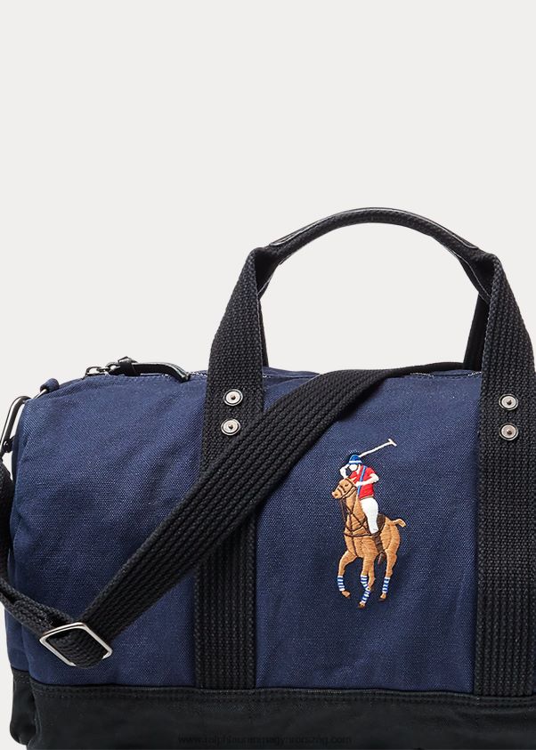 vászon nagy póni táska 2680482753 férfiak Ralph Lauren sötétkék/fekete