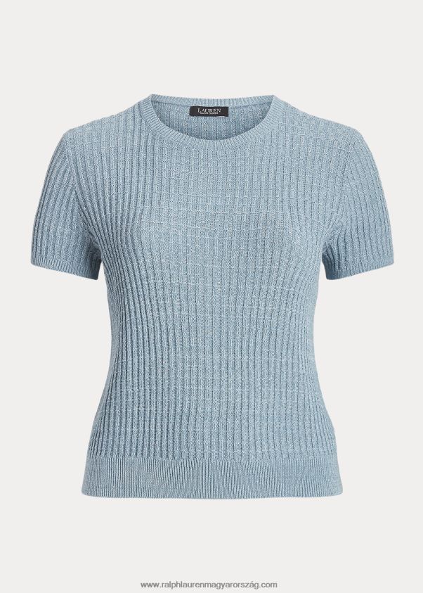 vászon-pamut rövid ujjú pulóver 2680484591 nők Ralph Lauren indigó óceán multi