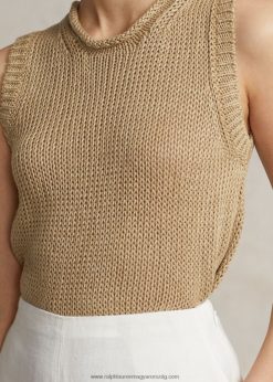 vászon-pamut ujjatlan pulóver tank 2680482905 nők Ralph Lauren alap homok