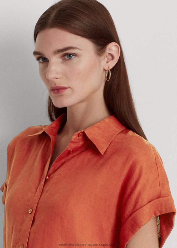 vászon rövid ujjú ing 2680484283 nők Ralph Lauren vörös napkő