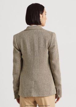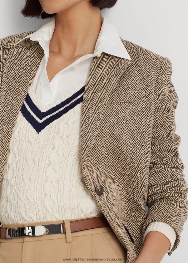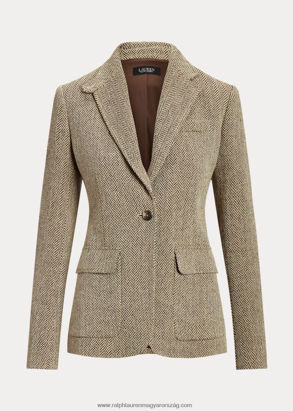 vászonkeverék halszálkás blézer 2680483979 nők Ralph Lauren barna/krémes