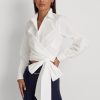 vászontekercs füles ujjú ing 2680484384 nők Ralph Lauren kavics kék