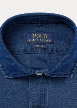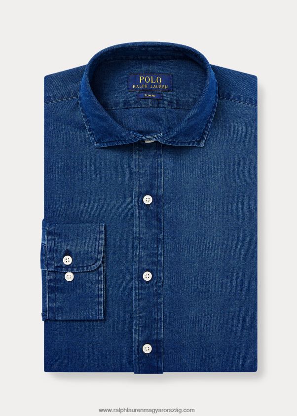 vékony szabású twill ing 268048795 férfiak Ralph Lauren indigó
