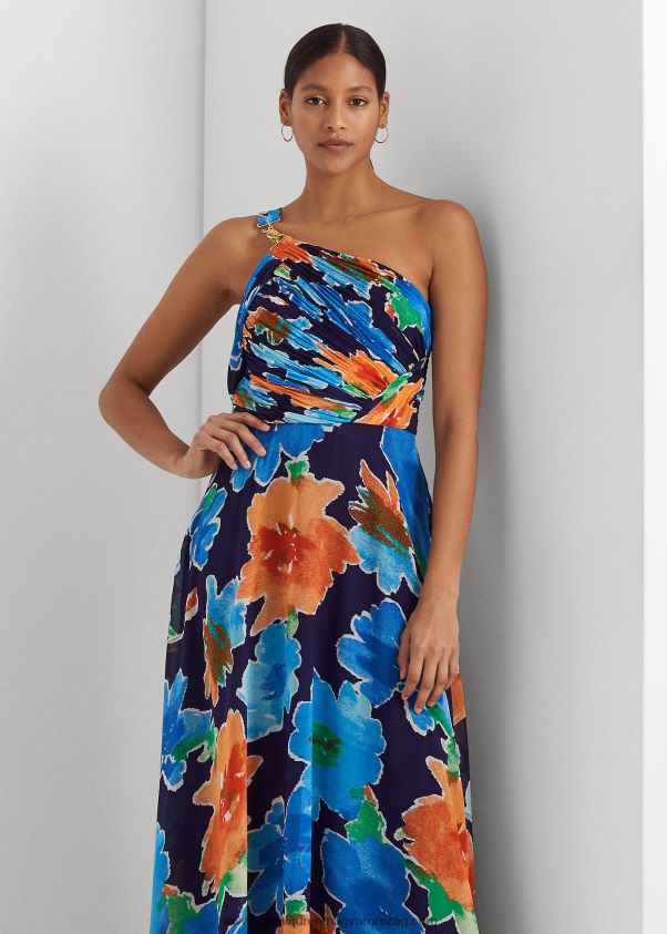 virágos georgette egy vállú ruha 2680489557 nők Ralph Lauren haditengerészet multi