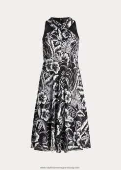 virágos georgette kötőfék ruha 2680484577 nők Ralph Lauren fekete-fehér