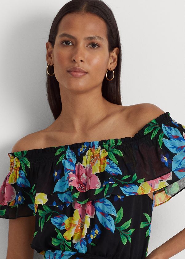 virágos georgette váll nélküli ruha 2680483868 nők Ralph Lauren fekete multi