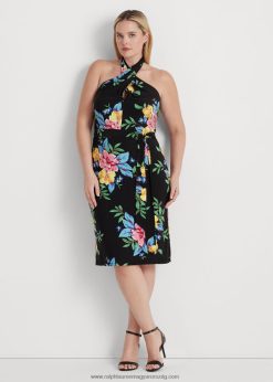virágos jersey kötőfék ruha 2680484573 nők Ralph Lauren fekete multi
