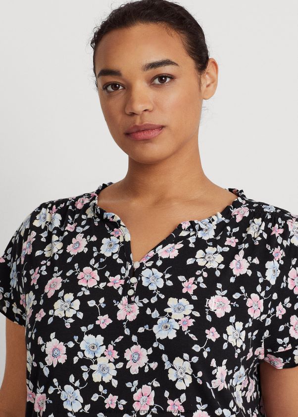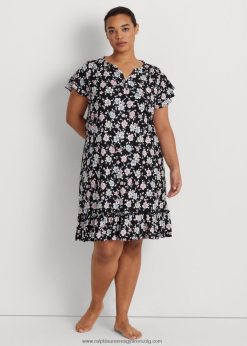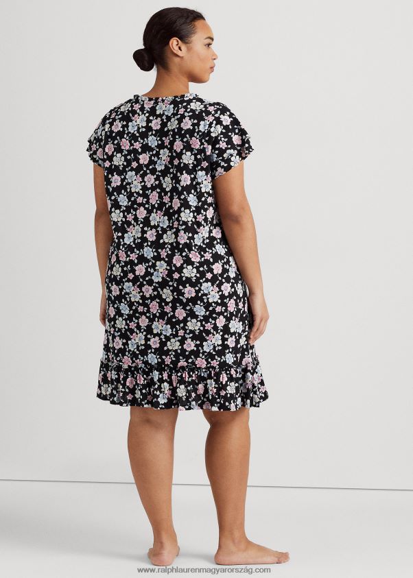 virágos jersey libbenő ujjú hálóing 2680484711 nők Ralph Lauren fekete föld virágos