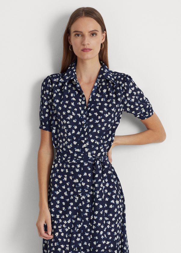 virágos krepp puffos ujjú ingruha 2680484071 nők Ralph Lauren kék multi