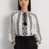 virágos krepp vágott kötőfék blúz 2680483871 nők Ralph Lauren fekete-fehér