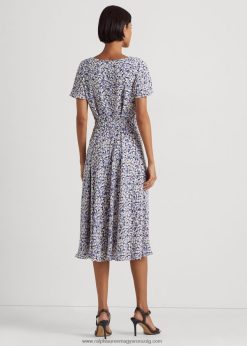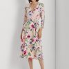 virágos öves buborékos krepp ruha 2680484449 nők Ralph Lauren kék/krém/rózsaszín