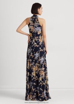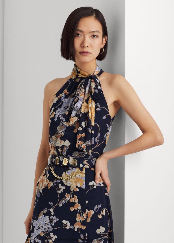 virágos öves georgette kötőfék ruha 2680484079 nők Ralph Lauren haditengerészet multi