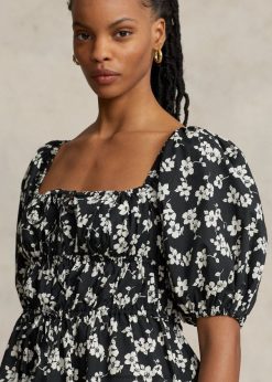 virágos pamut blúzos ujjú ruha 2680482932 nők Ralph Lauren romantikus hibiszkusz