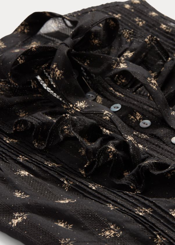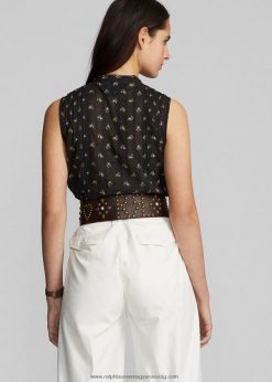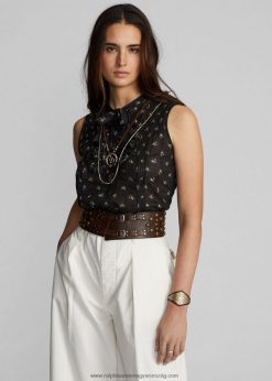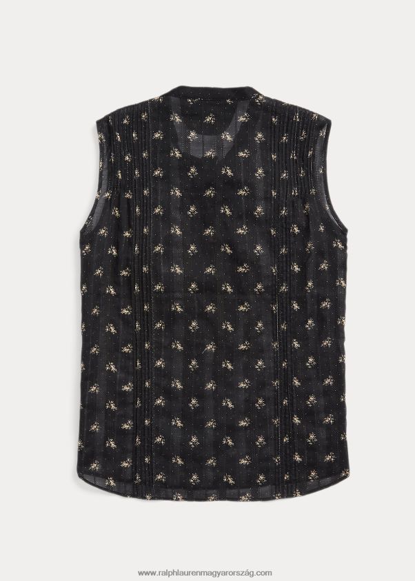 virágos pamut jacquard ujjatlan blúz 2680483629 nők Ralph Lauren fekete/krém